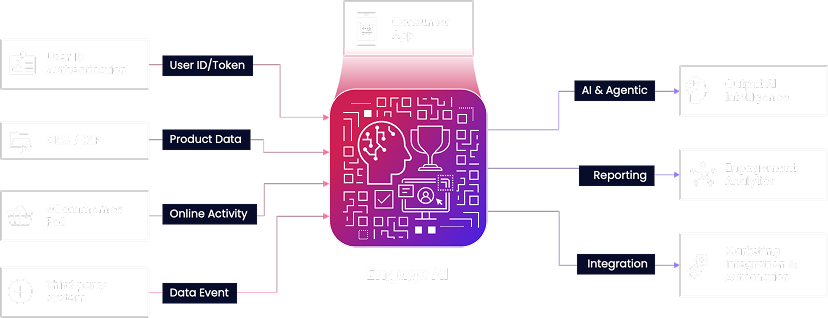 Imagine you want to reward users for attending webinars. You define a custom event called webinar_attended with fields for userId, webinarId and timestamp. Each time someone attends, your system calls Engage AI with that event. The Rules Engine receives it, checks if any conditions are met (for example, attending three webinars in a month) and then triggers the outcomes you’ve defined, such as awarding points, unlocking a badg or moving the user into a “Highly Engaged” segment.
